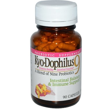 - • Probiotic Supplement • Promotes Healthy Intestinal Function • A Blend of Nine Probiotics • Intestinal Balance & Immune Support • GMP Certified Kyo-Dophilus 9 is formulated with three Lactobacilli strains and six Bifidobacterium strains. This unique blend of nine probiotics contains specially cultured human strains of friendly bacteria that are carefully processed to retain viability at room temperature, insuring an adequate number of cells for colonization in the intestines. Kyo-Dophilus 9 helps maintain balanced intestinal flora and promote healthy intestinal and immune function. Take Kyo-Dophilus 9 daily! Suggested Use Take one capsule for adults (1/2 capsule for children under four) with a meal twice daily. For infants, sprinkle 1/2 capsule in food or juice. Other Ingredients Gelatin, starch (potato, tapioca and corn) and silica. May contain trace amounts of fish. Free of: preservatives, sodium, yeast, dairy, artificial colors and flavors. Warnings Store in a cool, dry place with cap tight. Keep out of reach of children. Refrigeration not required. Tamper Resistant Cap And Seal: Do not use if cap drop ring or printed inner seal is broken or missing.