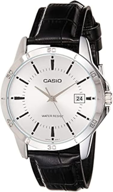 Casio - For Men Standard Analog Stainless Steel Date Silver Dial Black Band Watch Mtp-V004L-7A