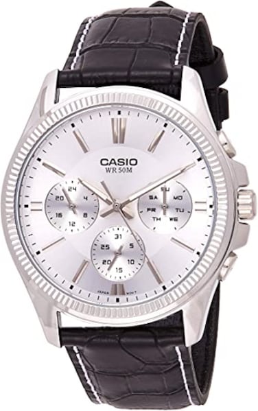 Casio - Watch For Men Analog Chronograph Leather Black MTP-1375L-7AV