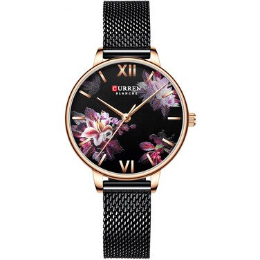 CURREN-CURREN 9060 Luxury Casual Business Quartz Women Watch Flower Dial Elegant Exquisite Lady Wrist Watch 3ATM Waterproof Clock Wristwatch for Female Ladies with Stainless Steel Mesh Strap Band