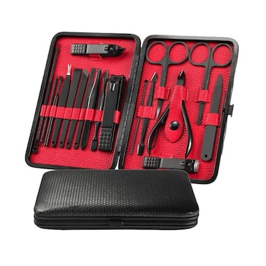 - 18pcs nail and toenail tools for three functions, including hand care, facial care, and foot care. This Manicure Kit has everything you need.