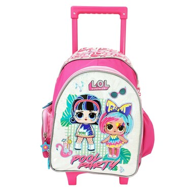 The Lol Surprise! Pool Party Trolley Bag is a 14-inch trolley bag designed for kids.