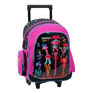 The Trolls Trolley Bag is a vibrant and eye-catching 18-inch trolley bag designed for young children.