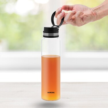 BOROSIL EASYGO GLASS BOTTLE BLACK STAINLESS STEEL LID -1 LITER