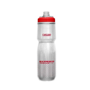 - <p>If drinking cold water is important to you, the CamelBak Podium Ice Insulated Water Bottle is right up your alley. The Podium Ice bottle is the perfect cold-storage water bottle for biking adventures. This water bottle has been engineered to keep your body properly hydrated while improving your on-road performance. It has been designed with Aerogel Insulation, which keeps water cold four times longer than other bicycle water bottles. Cycling enthusiasts have trusted CamelBak for years to provide them superior bottles for water that are optimized for peak performance. The Podium Ice sports water bottle continues to elevate CamelBak as the best of the best in the cycling world. This premium squeeze water bottle is a must-have item for your bike accessories kit. It has been redesigned to fit securely in a variety of bicycle bottle cages. The water bottles squeeze easily, allowing you to take in more water with less effort. They also include a high flow, self-sealing cap, which maximizes flow rate while reducing spills and splashes. The Podium Ice bottle is 100% free of BPA, BPS, and BPF. This insulated water bottle also features Trutaste Polypropylene with HydroGuard materials so that you taste your water and nothing else, time after time. All parts are easy to separate, which makes cleaning a breeze. </p>