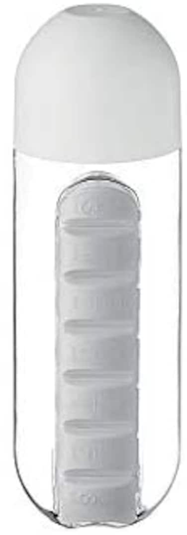 Generic 2-In-1 Tritan Plastic Water Bottle 600ml With Built-In Daily Pill Box Organizer (White/ 6.5X23CM)