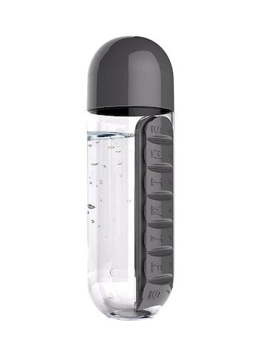 Generic Sports Tour Hiking Water Bottle With Daily Pill Box Black/Clear 23.5 X 6.9cm