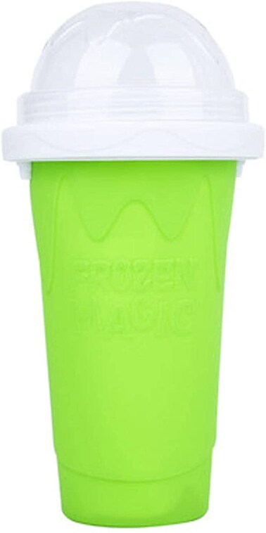 New Magic Slushy Maker Squeeze Cup, Quick Frozen Smoothies Slushy Ice Cream Maker, DIY Homemade Smoothie Cups with Dome Lids, Double Layer Summer Juice Shake Cup - Green