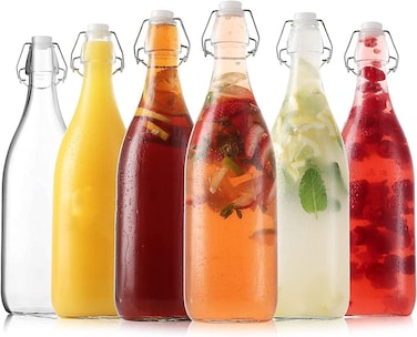 Star Cook Airtight 1L Flip Top Glass Bottle, Brewing Bottles For Kombucha, Kefir, Beer, Soda, Juice, Water, Clear 1L 6pcs