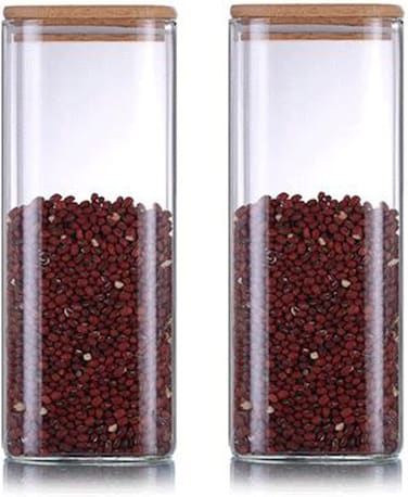 - High quality bamboo wood lids with a silicone airtight seal and high clarity transparent borosilicate glass which offers greater temperature resistance for long-lasting use.Great for storing cookies, sugar, flour, spices, and other kitchen staples.