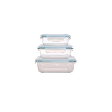 Click & Lock Glass Container Clear/Blue 370ml+640ml+1.05L 3 PCS