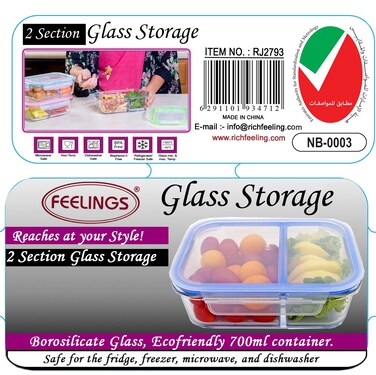 Feelings Glass Storage With Partition 700ml Blue Silicone Clear Lid