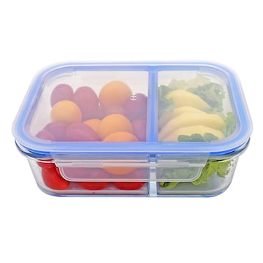 Glass Storage Box With Divider Clear/Blue 1.2L