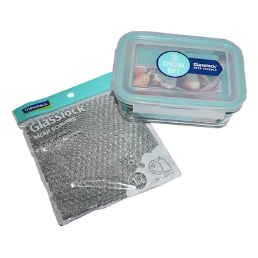 Glasslock Rectangular Storage Container With Mesh Scourer 710ml Multicolour
