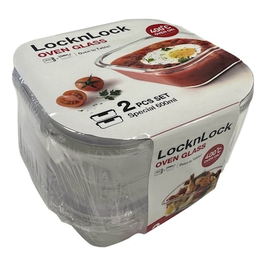Lock & Lock Oven Glass Square Shaped Food Container 600ml 2 PCS