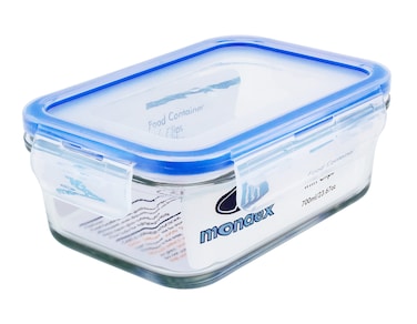 MONDEX 700ML RECTANGULAR GLASS FOOD STORAGE CONTAINER WITH BLUE LID CMN0096
