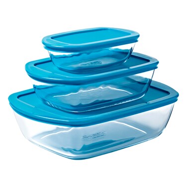 Pyrex Cook And Store Food Container Blue 400ml+1.1L+2.5L