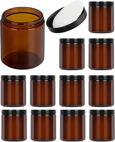 Star Cook 12Pack amber Round Glass Pot Jars, 270g Empty Jars with Lids, Refillable Cosmetic Containers, Travel Jars for Lotion, Cream, Slime, Cosmetic