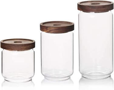 Glass canisters are made of food-grade high borosilicate glass, nontoxic, lead-free and 100% food-safe. Wood lids are made of premium genuine acacia wood, with silicone sealing ring, 100% food-safe and stylish, featuring one-of-a-kind.