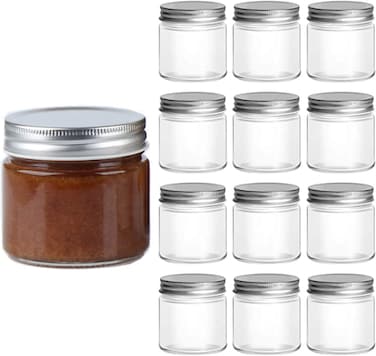 Star Cook Mason Jars with Airtight Metal Regular Lids(100ml), Sealed Clear Glass Canning Jars with Wide Mouth for Spices, Honey, Jam, Jelly, of 12 (100ML)