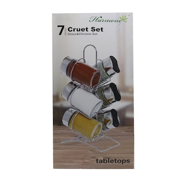 The Harmony Flip Topped Spice Shaker With Metal Rack Clear 7 PCS is a convenient and stylish way to store and dispense your favourite spices.