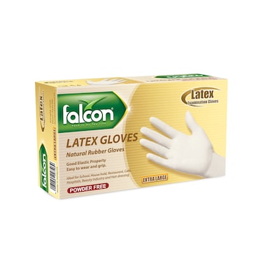 Falcon Latex Gloves Powder Free -100 Pieces (Extra Large)