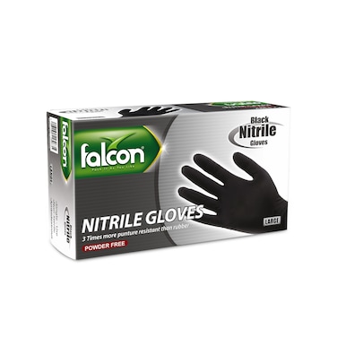 Falcon Nitrile Gloves - Black Powder Free - 100 Pieces (Large)