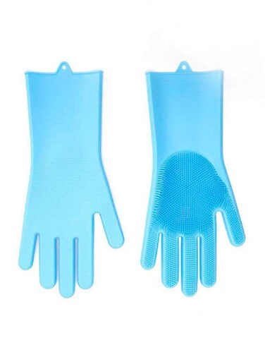 Generic Magic Silicone Gloves With Wash Scrubber Blue 13.6 X 6.1Inch