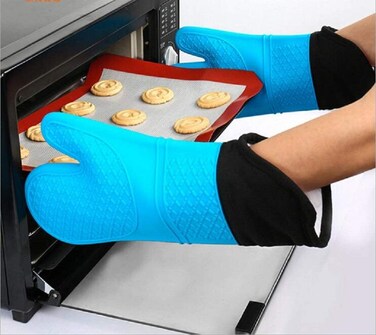 - Silicone Oven Gloves - Heat Resistant Grill BBQ Gloves with Fingers Waterproof Non Slip Oven Mitts Kitchen Cooking Gloves for Baking, Grilling, Barbeque, Blue