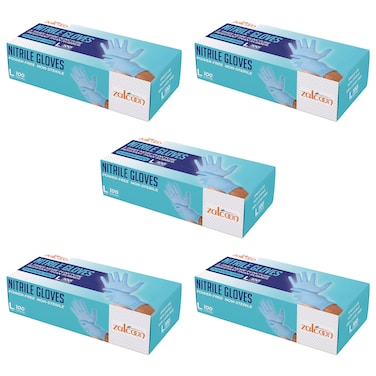 Zalcoon Nitrile Exam Gloves (Medium), Blue, Latex-Free, Powder-Free, Disposable Gloves, 500 Pieces (5 Packs x 100 Pieces)