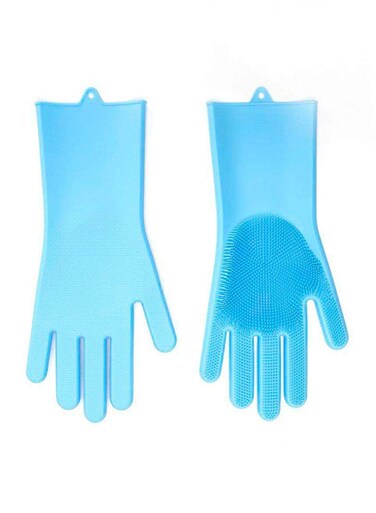 Generic Magic Silicone Gloves With Wash Scrubber Blue 13.6 x 6.1inch