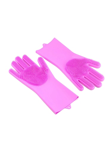 Generic Multi Usable Magic Silicone Gloves With Wash Scrubber Pink 240g