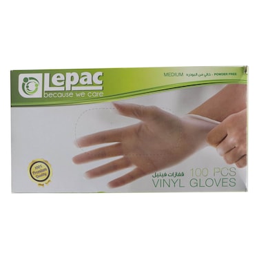 The Lepac Powder-Free Gloves are medium-sized gloves that come in a pack of 100.