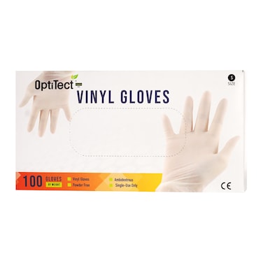 OptiTect Vinyl Gloves Small White 100 PCS are disposable gloves made from high-quality vinyl material.