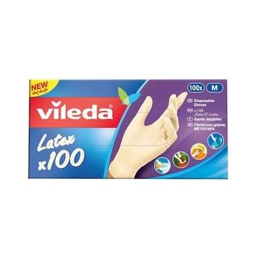 Vileda Latex Disposable Medium Gloves in beige colour come in a pack of 100 pieces.