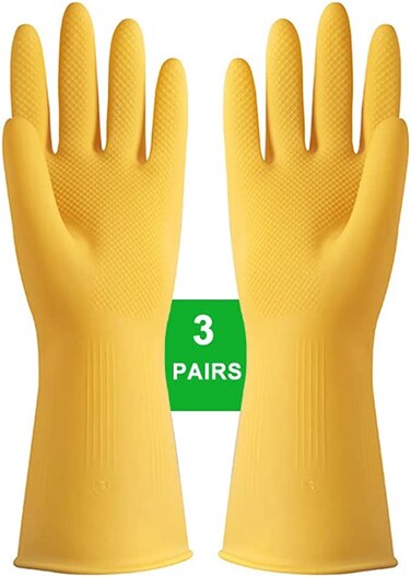 - 【EXCELLENT GRIP & NON-SLIP】The non-slip palm and fingers cleaning gloves offer good grip to grasp wet and greasy dishes and gadget during washing. Never shall a dish slide from your hands! 3 Pairs gloves Hands come in hot yellow — thereby bringing joy to you