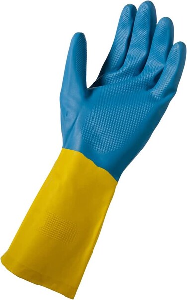 - Neoprene-coated for chemical protection. Natural rubber latex adds comfort and flexibility