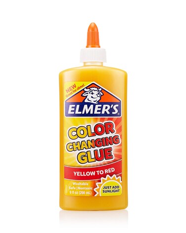 With Elmer'S Color Changing Glue Yellow 5 Oz you can discover the magic of color changing glue. Glue changes color when exposed to sunlight. To restore the original color simply remove it from sunlight. It is great for slime, gluing, drawing, painting and more. It is available in yellow to red and blue to purple color sets. It is entirely safe , non toxic and washable. 5oz bottle makes one batch of slime while 9Oz bottle makes two batches. You can use LED light to create patterns or write on your creations.