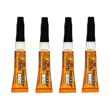 Gorilla Minis Original Glue 0504 White 3g is a pack of 4 small-sized glue bottles.