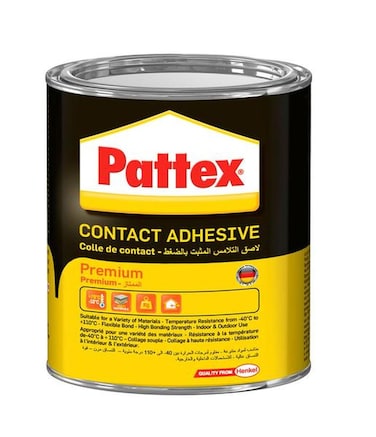 - PATTEX CONTACT ADHESIVE UNIVERSAL is a multi-purpose contact adhesive. It is a single component, polychloroprene based, high strength and universal contact adhesive. Ideal for carpet applications, Application Fields: It is used for wood and decorative laminates, rubber, leather, cork, felt, rigid PVC, soft foams, bonding veneer strip to edges and curves, fixing of sound-proofing, insulating and acoustic panels and tiles (with the exception of expanded polystyrene) on to dry, stable surfaces, sealing edges to protect from moisture and weather conditions, on solid and plywood, and for fitting sealing strips. It is not suitable for expanded polystyrene, polyethylene, polypropylene and PTFE (Teflon).