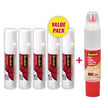 3M Scotch Permanent Glue Stick White 20g 5 PCS and Clear Glue with 2-Way Applicator Clear