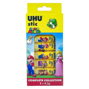 - Make a big statement with this pack of 8 UHU Super Mario Edition glue sticks