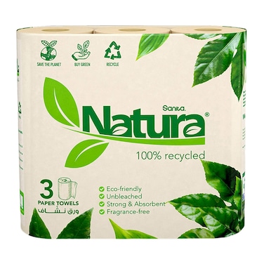 Sanita Natura 2 Ply Kitchen Paper Towels White 60 Sheet Pack of 3