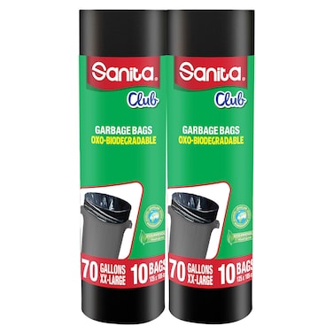 Napco Sanita Club 70 Gallon Oxo-Biodegradable XXL Black 20 Garbage Bags