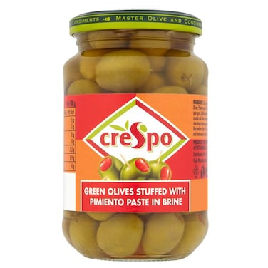 Crespo Green Olives Stuffed with Pimento Paste in Brine, 200g