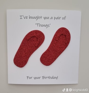 A fun Red Flip flop / Thong Birthday card. Handmade with foam glitter flipflops, with a blank insert for your message