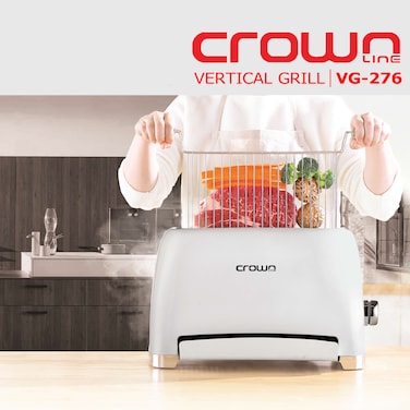 Crownline VG-276 Vertical Grill, 160°C, 30 mins. Timer, 50/60 Hz, 220-240 V, 1300 W, Auto shut-off
