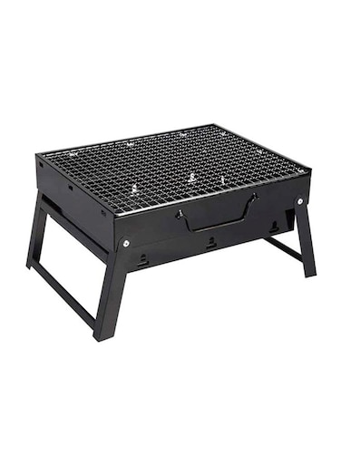 Generic Portable Barbecue Charcoal Grill Black/Silver 13.77x10.75x2.45inch