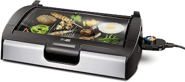 Princess Table Top Grill Black/Silver, Large Grill Plate / Easy To Clean With Grease Tray, Reinforced Glass Lid, Adjustable Thermostat, Prn.102320