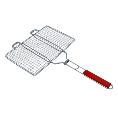 Royalford Barbeque Grill With Wooden Handle, RF10389 - Folding Portable BBQ Grill Basket For Fish Vegetables Shrimp, Larger Grilling Area, Lockable Grate